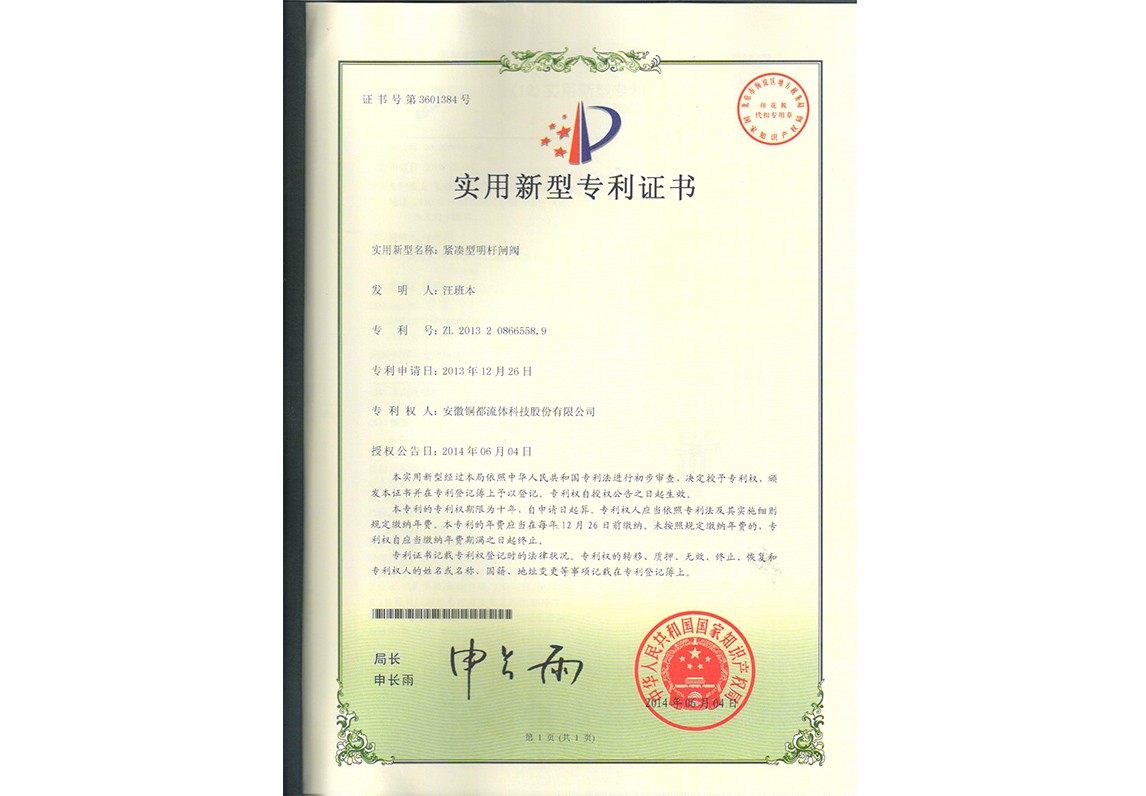 緊湊型明桿閘閥
