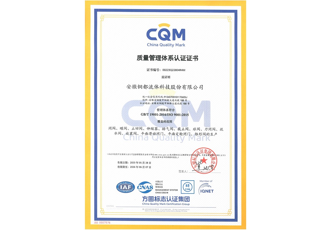 ISO9001質量管理體系認證證書