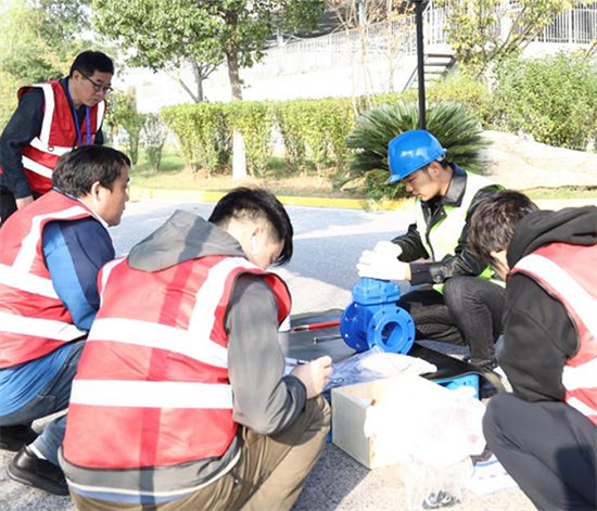 現場圍繞水質化驗檢測、管道連接操作、污水閥門安裝操作等三大競賽項目展開角逐,技能骨干齊聚,比賽緊張有序、亮點紛呈。競賽人員以精湛的技藝守護長江碧水,為長江經濟帶生態保護注入工匠力量。