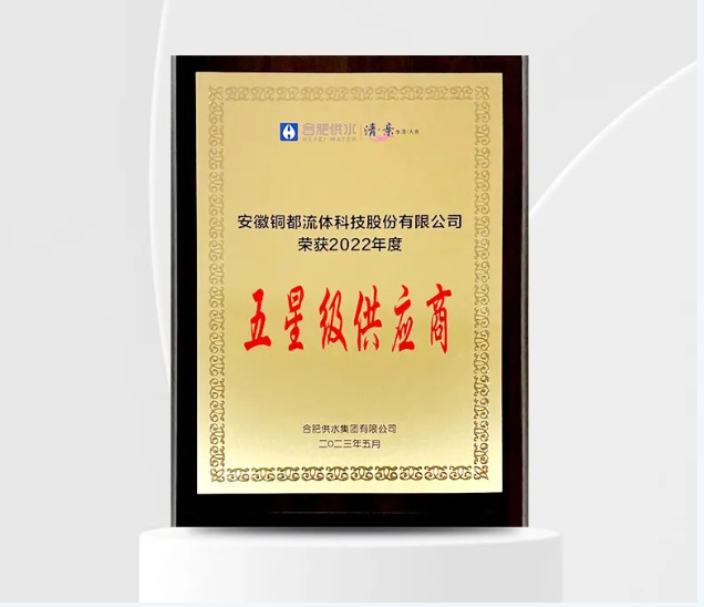 2022年度獲得合肥供水“五星級供應商”評級的企業僅6家,此次獲獎,充分體現了合肥供水集團對銅都流體綜合實力的高度認可。