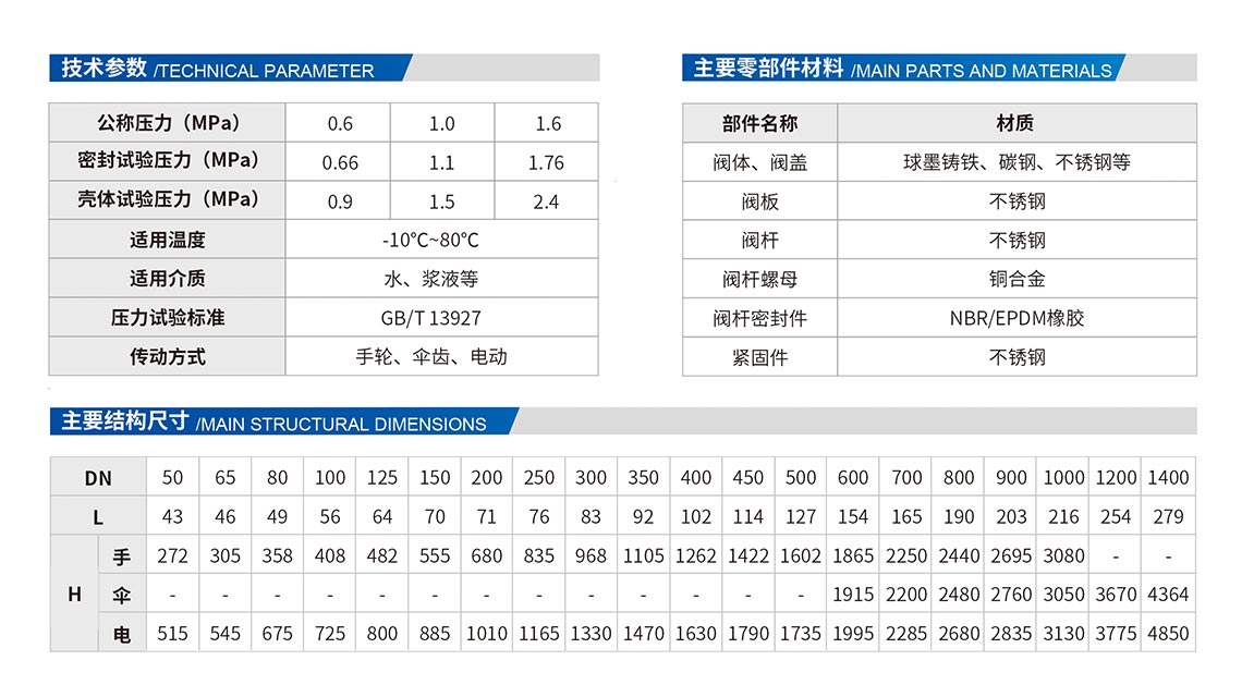 6、閥體內外涂覆環氧樹脂層,閥板緊固件采用不銹鋼,密封件為丁腈橡膠,防腐性能好。